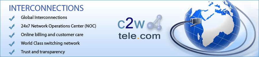 connect2web Telecom (c2w telecom) is a sister concern of connect2web and is focused on delivering high quality VOIP services to the wholesale and retail market. A world class switching and data network infrastructure positions us to deliver unparalleled levels of service and quality to our clients and partners. Our operator network spans global termination destinations and is supported by a 24/7 network operations center (NOC) to ensure a high quality of customer service. Our commitment to customer service is further reinforced through our integrated online billing and management solutions which gives our customer and partners real-time access to all of their financial and technical route information.
